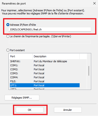 Tick the « IP address/Host name » option, and enter «JORDLOCAPRIN001.fmel.ch» in the field.